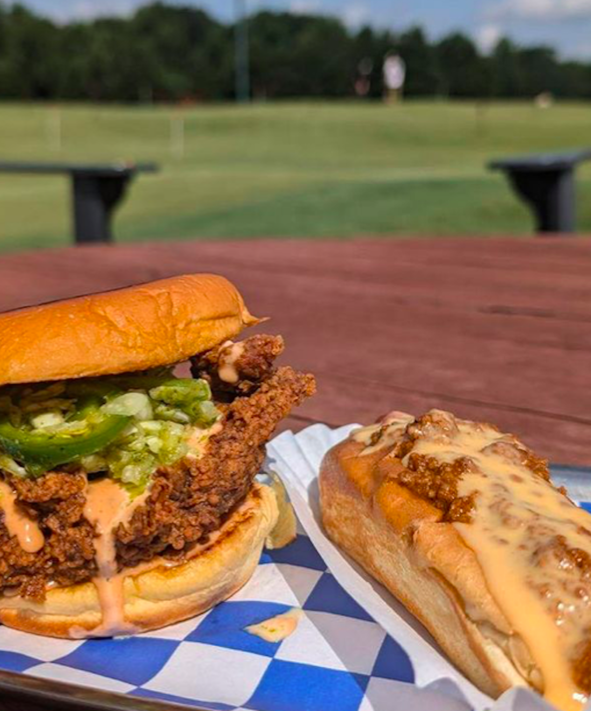 The golf spot also features a fast-casual restaurant and bar area called The Grubhouse, a modern twist on a classic clubhouse. It features bites and snacks as well as entrees like its smash burger, Carolina hot chicken and cheese steak. The Grubhouse reflects the laid-back atmosphere of the brand, offering hangout spots around firepits, music, food, drinks and merchandise.