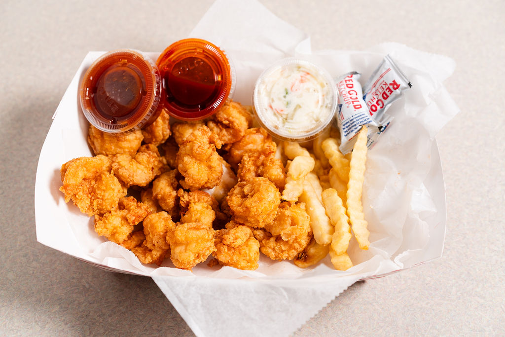 Their Vincennes Avenue location is known for having “shrimp bomb bags” which are bags of shrimp in portions of 14, 19, 60 or 120 pieces. The restaurant also serves shrimp dinners with coleslaw and fries or spaghetti, as well as cocktail sauce or hot sauce.