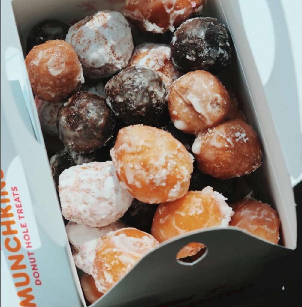 The chain may be best known for selling donuts, but its menu also features donut holes, called Munchkins, stuffed mini bagels, a sourdough breakfast sandwich, croissant and muffins. Drink selections at Dunkin’ Donuts include hot and iced coffees, lattes and non-coffee options such as matcha, chai and iced tea.