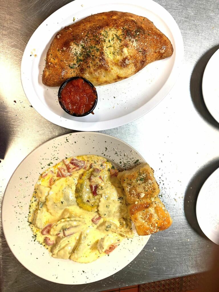 The menu also features calzones and pizzas, as well as desserts like baklava, cheesecake, tiramisu and cannoli.