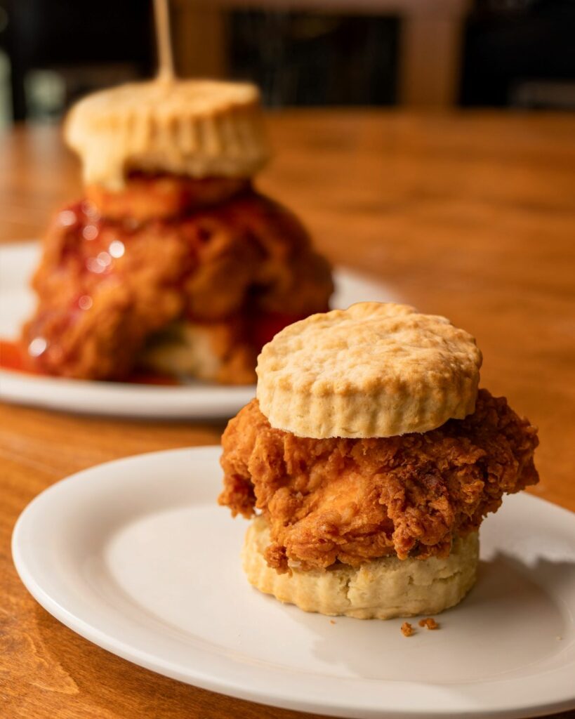 With a menu that revolves around biscuits, the restaurant offers items like classic biscuit sandwiches complete with egg, melted cheese and choice of breakfast meat, to more elevated options like a biscuit sandwich made with apple butter, fried chicken, bacon and cheese.