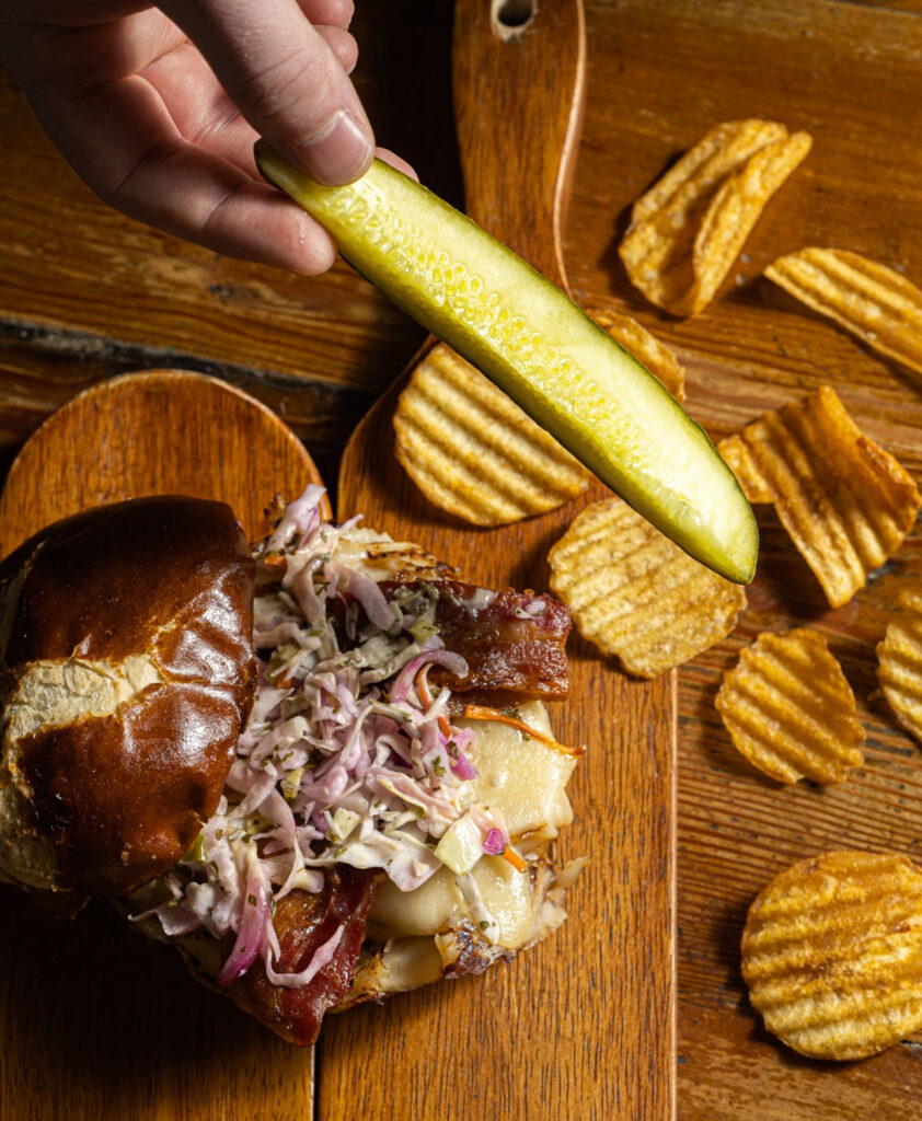 Liberty Tavern serves appetizers such as wings, loaded tots and spinach artichoke dip, as well as salads, sandwiches, burgers, fried chicken and fish and chips. There’s also a weekend brunch menu with items like French toast, a breakfast burger topped with bacon and a fried egg, along with a cornmeal pancake and chicken tender plate. The drink menu includes cocktails like a bloody mary and espresso martini, plus a wine list and draft beer selection, as well as seltzers and bottle and can beers.