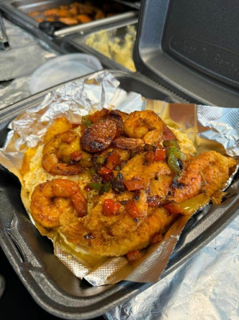 The menu focuses on hearty and comforting dishes such as wings, catfish and shrimp as well as sides like potato salad, mac and cheese and candied yams.
