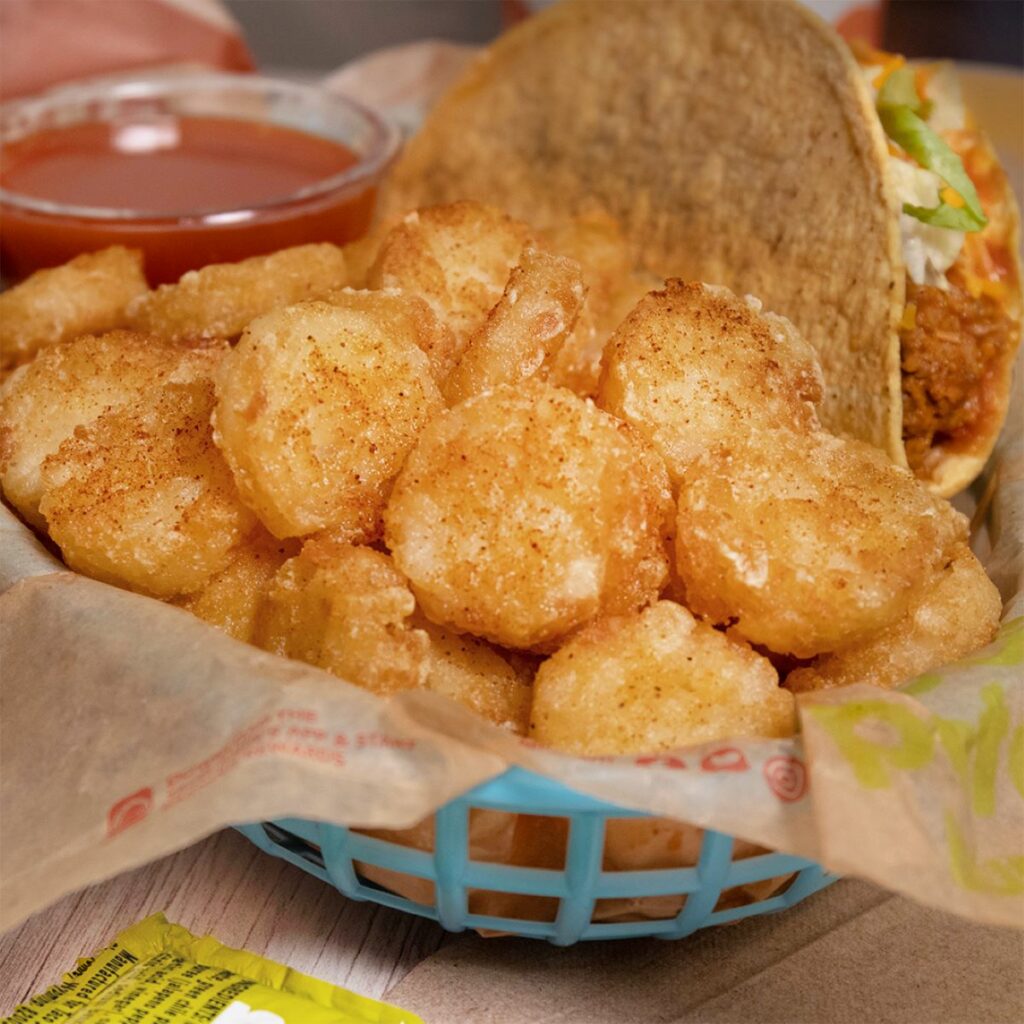 The Wyoming based chain serves tacos made with beef and chicken in crunchy and soft shells, as well as burritos, quesadillas, taco salads and bowls. The eatery also offers breakfast options like a breakfast burrito and scramblers, which are bowls made with potato olés, the chain’s signature hash browns. Potato olés are also served up in burritos, as a side or like nachos, complete with meat, beans, cheese and other toppings.