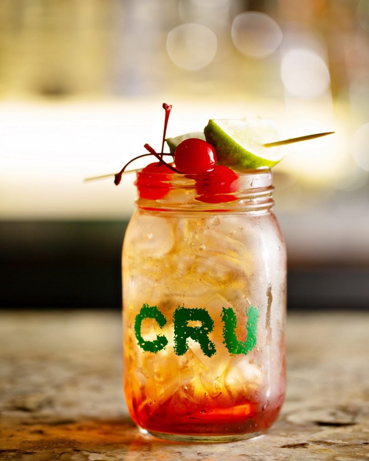 In the evenings, Cru becomes more about the nightlife. Craft cocktails such as Sour Patch Kids and Cru Lemonade are available, as well as bottle service and a variety of hookah flavors.