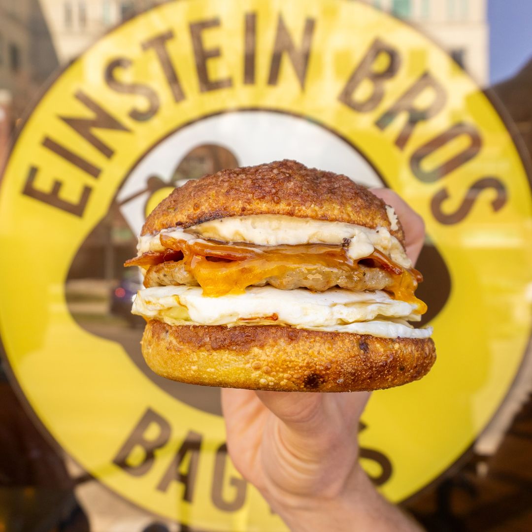 Einstein Bros. Bagels was founded in 1995, quickly establishing itself as a go-to spot for fresh, high-quality bagels and coffee. Created by the merger of several bagel chains, the brand has expanded across the United States, becoming synonymous with a wide variety of delicious bagel options. The menu features classic bagels like sesame and everything, as well as unique flavors such as asiago cheese and cinnamon sugar.