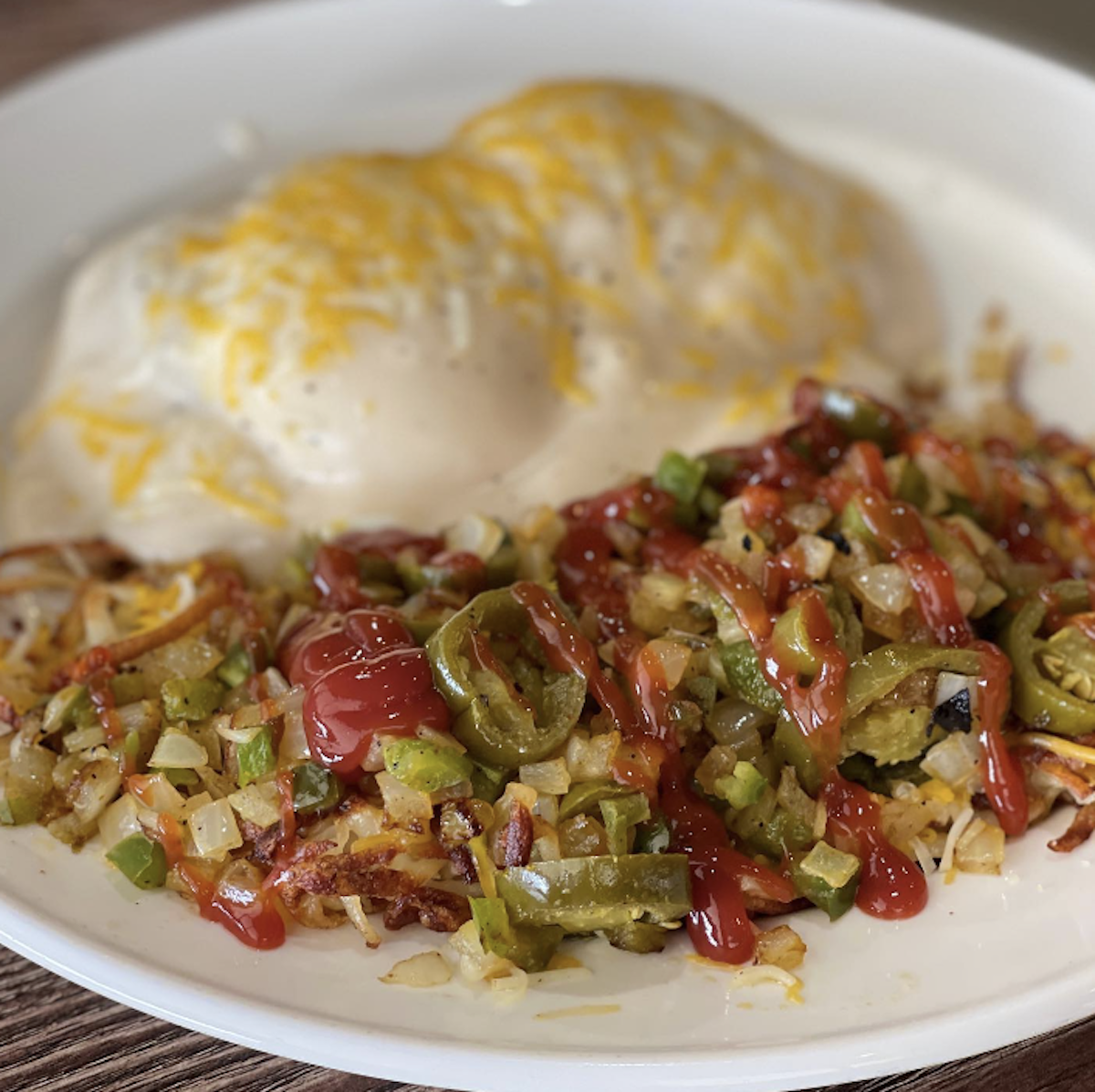 The restaurant’s Instagram is packed with picture-perfect platings of omelets, sandwiches, Benedicts, scrambles, and waffles topped with berries, syrup, and powdered sugar. Others depict lunch features like gyros, burgers, and golden fries.