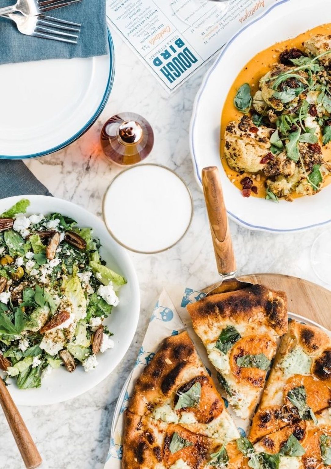 Doughbird’s menu is anything but boring, offering slices, sips and cocktails that add interest to each visitor’s day. The restaurant specializes in what they call “an unexpected yet perfect duo” of pizza and rotisserie chicken. This produces some eclectic combos like Brussels sprout Pizza with melted sweet potato and glazed bacon or Thai curry cononut rotisserie chicken. With eight house-made sauces, customers can customize their pizza, or level-up their crust-dunking experience.