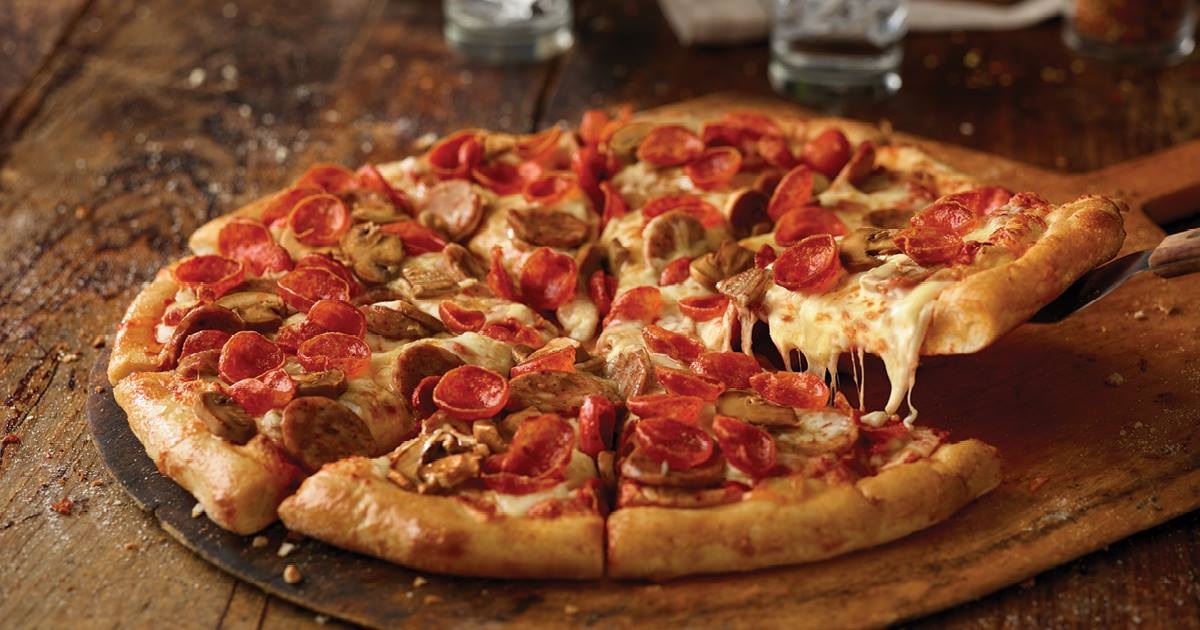 The Marco’s menu offers a variety of signature pizzas including Pepperoni Magnifico, with two types of pepperoni, and the Deluxe pizza with a variety of meat and veggie toppings. Wings, salads, and subs are also options.