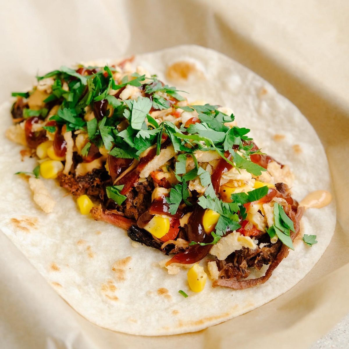 Diners at Torchy’s Tacos can enjoy a variety of tacos for breakfast, lunch, or dinner. Some of Torchy’s “Damn Good Tacos” include the Trailer Park with fried chicken and all the fixings, the Green Chile Pork, and the Baja Shrimp. The Mofaux is a vegetarian option featuring Cowboy-Style Beyond Beef, grilled corn, avocado, cilantro, and Diablo sauce on a corn tortilla. Queso, salads, quesadillas, margaritas, and more are also on the menu.