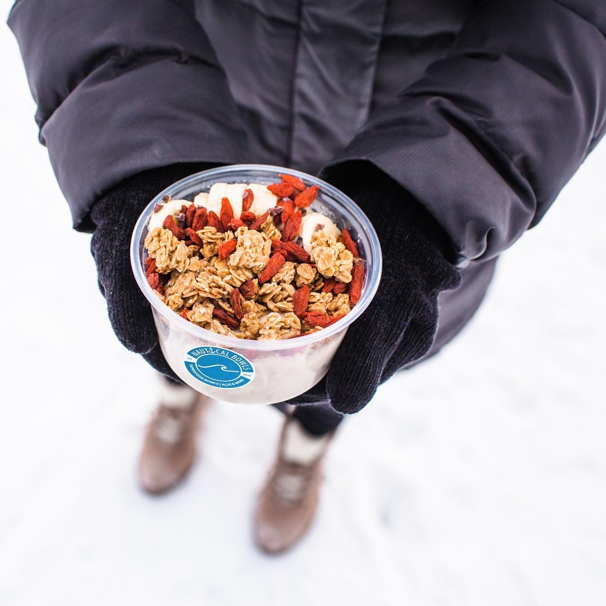 You can also create your own bowl starting with a base—pitaya, mango, coconut, blue majik, acai, or chia pudding. You can then choose from a variety of toppings including cacao nibs, almonds, granola, fruit, a drizzle of honey, or other offerings.