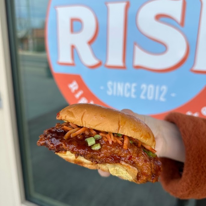 Rise also has a sweet selection that includes Cinnamon Biscuit Rolls and Apple Fritters.