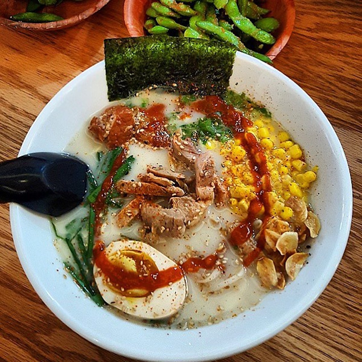 Nishiki differentiates itself from competitors by using blended Tonkutsu — or pork bone broth. It is high-pressure cooked. By decreasing the cook time, the shop is able to increase the variety of broth flavors offered each day.