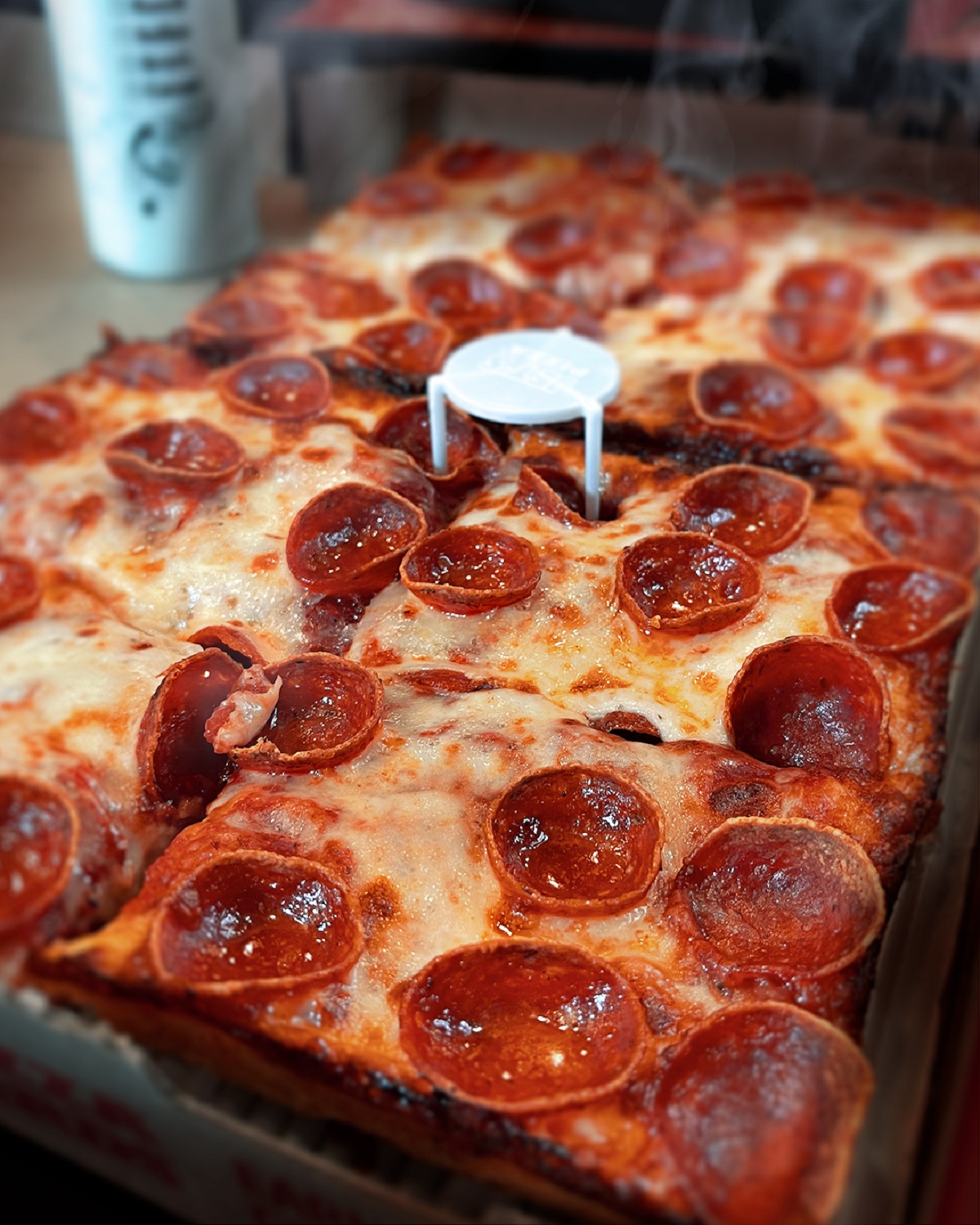 Jet’s is well-known for its 8 Corner Detroit-style pies, and Bowen and her husband are from Michigan. “This is where our love for Jet’s started,” she said. “The Detroit-style is a square pizza. It’s a cheesy crust edge.”