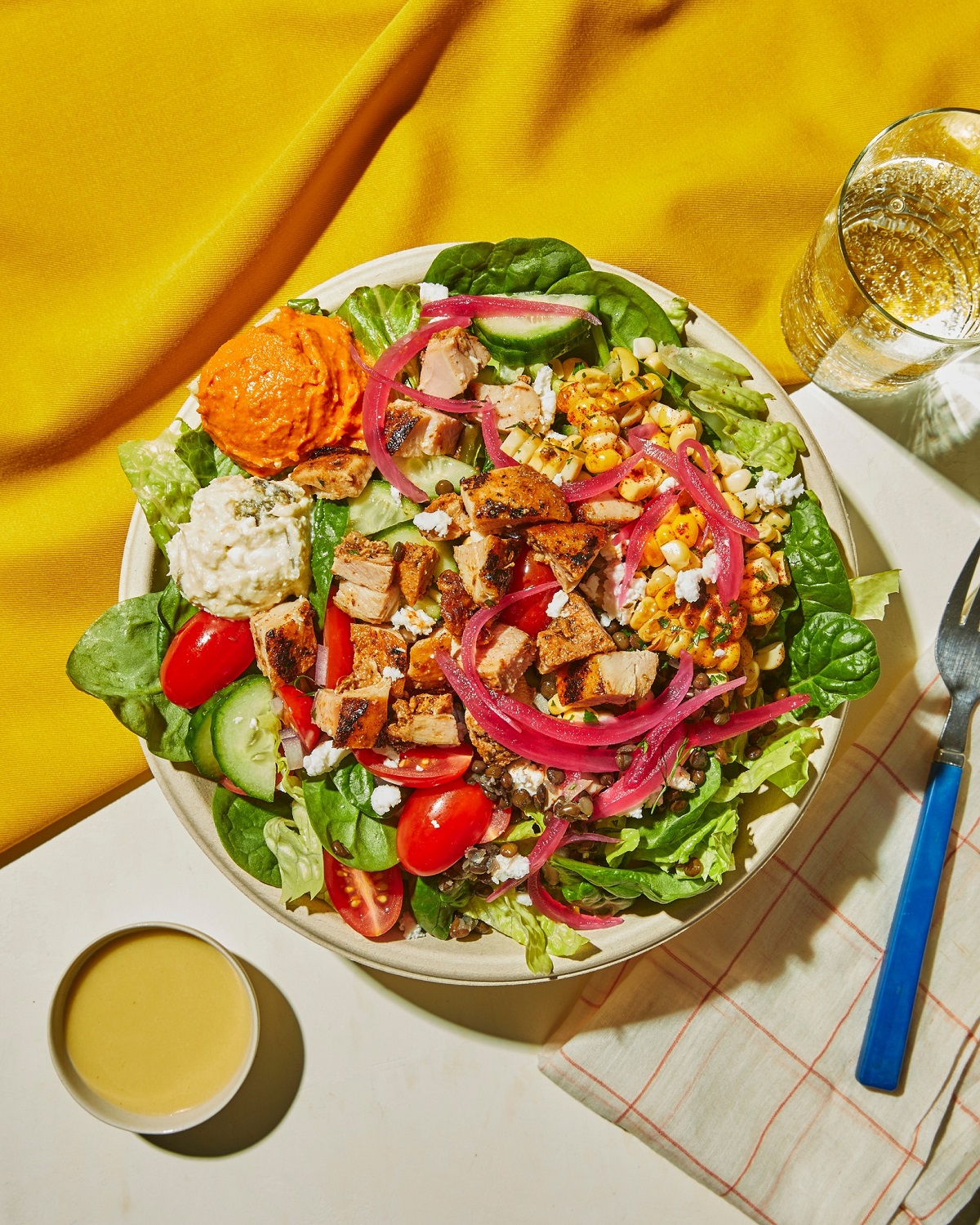 CAVA offers an assortment of salads, grain bowls, and pitas, as well as dips, spreads, proteins, and toppings. CAVA offers a build your own meal option that starts with a base of salad, pita, rice, and more, and then add a choice of a dip or spread including hummus, roasted eggplant, and other options. A protein can then be added along with some of your favorite toppings and your choice of dressing.