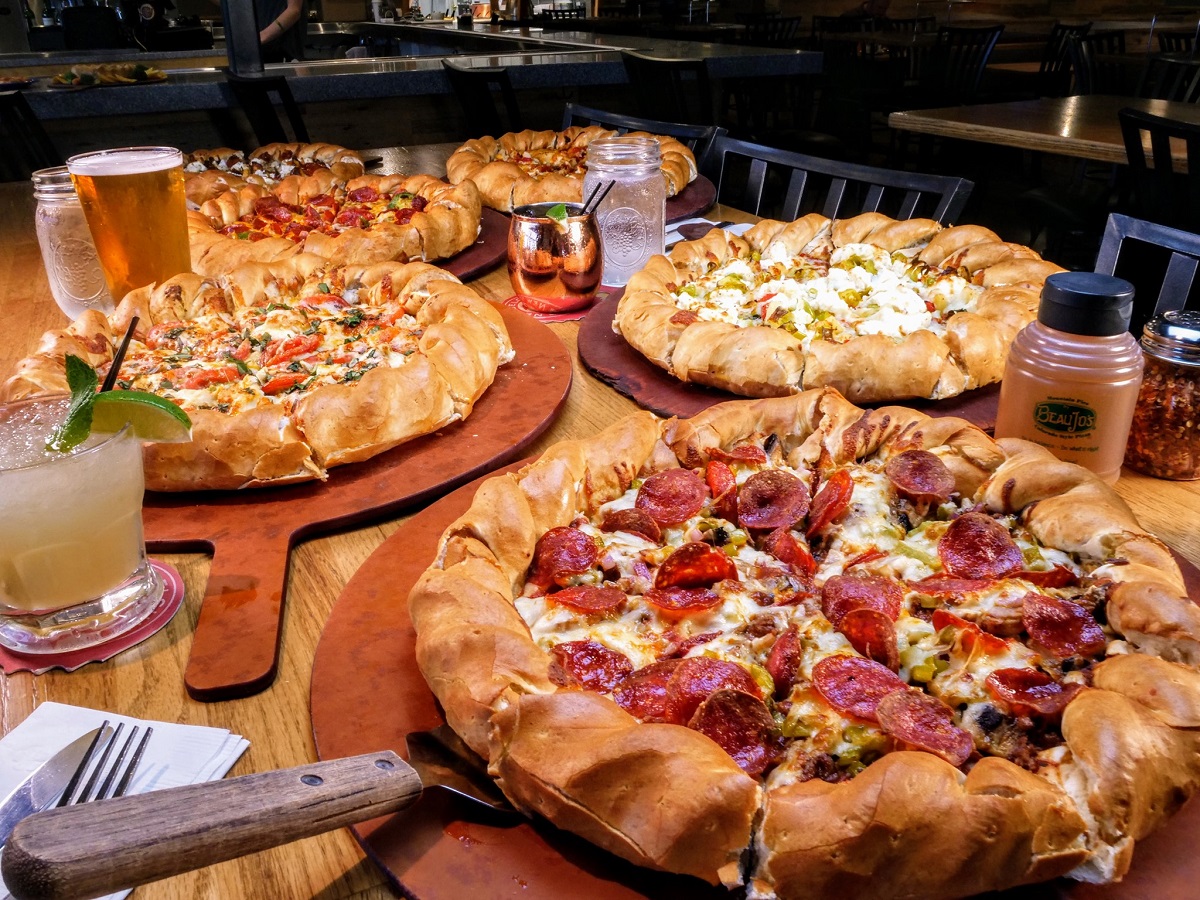 Beau Jo’s is known for its Colorado Mountain Pie, which “has a hand-rolled edge of daily made dough creating a barrier to hold in a mountain full of fresh toppings, to satisfy an adventurous appetite.” Diners can add a little sweetness to the crust by dipping it in honey.