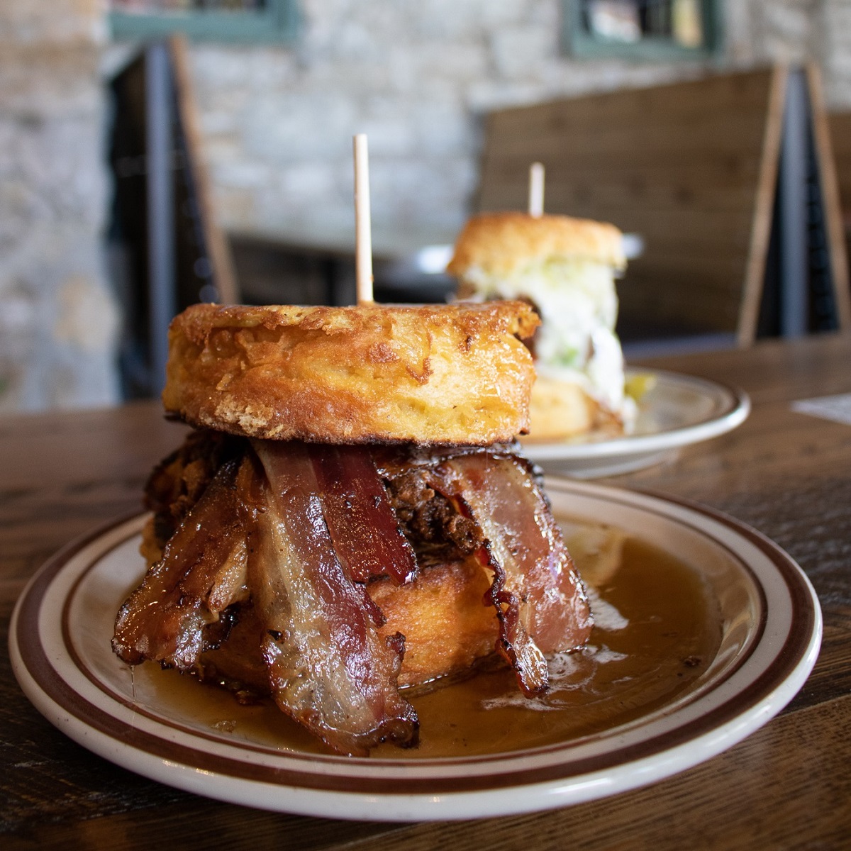 The Centennial location will include a drive-thru, and a new patio will provide ample space to enjoy delicious biscuit sandwiches such as the Dahlia or the Franklin in an outdoor setting. The Dahlia includes a sausage patty, apple butter, and a fried egg covered in maple syrup served on a buttermilk biscuit. The Franklin biscuit has buttermilk fried chicken, bacon, and cheddar cheese and is smothered in sausage or vegetarian mushroom gravy.