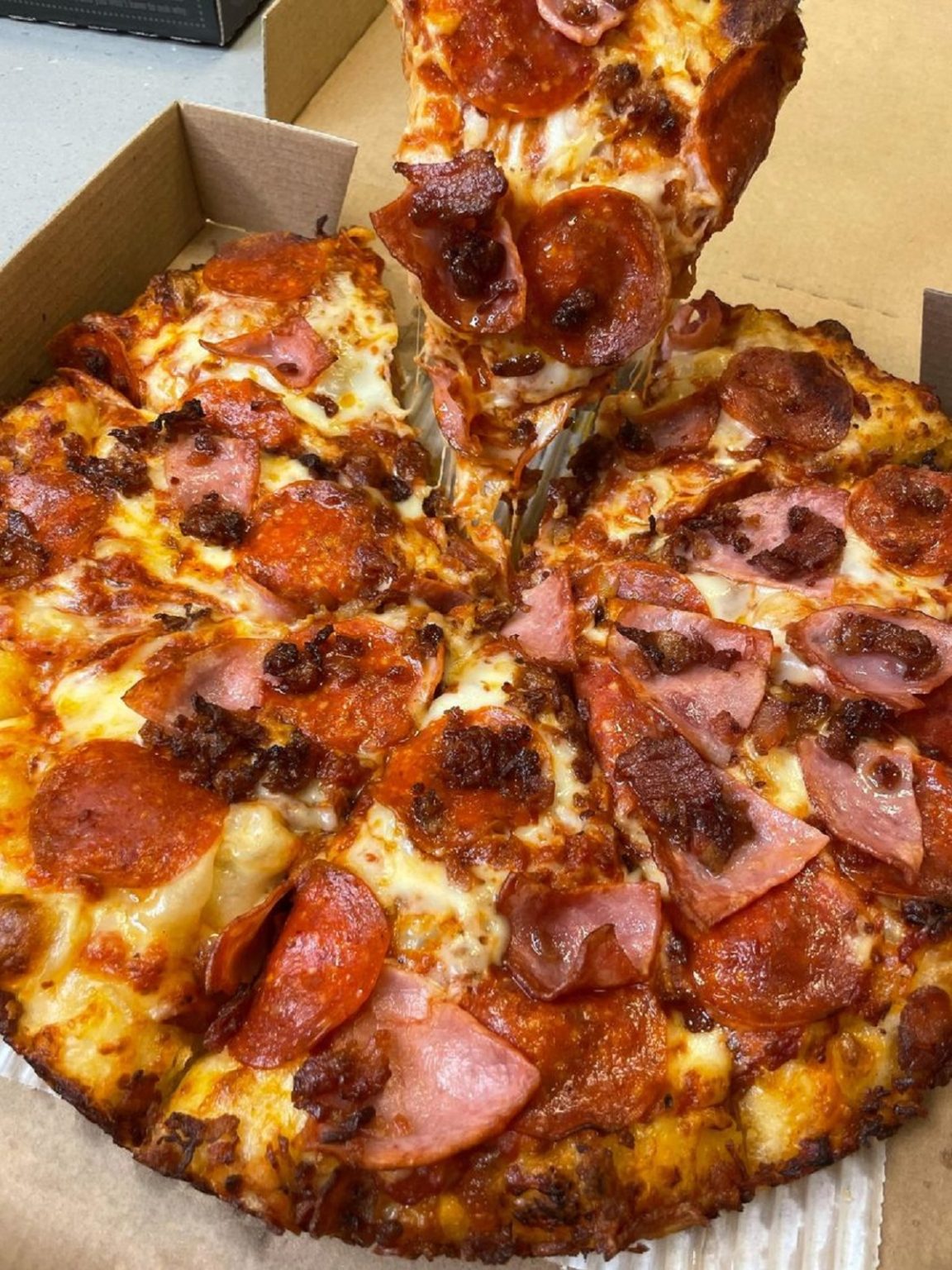 The Domino’s menu is filled with a variety of pizzas, sandwiches, pastas, and salads. Boneless chicken and chicken wings are available in a variety of flavors, along with Bread Bites, Bread Twists, and Cheesy Bread.