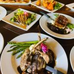 Fun cocktails include one that is a play on a paper plane. The drink is featured in a martini glass with a gold rim, origami paper airplane, Bullet rye, Montenegro, and egg whites. “It makes it nice and frothy, and a really fun pink drink.” Another drink, the Frisbee Golf, features Tanqueray gin, sweet vermouth, prosecco, and more.