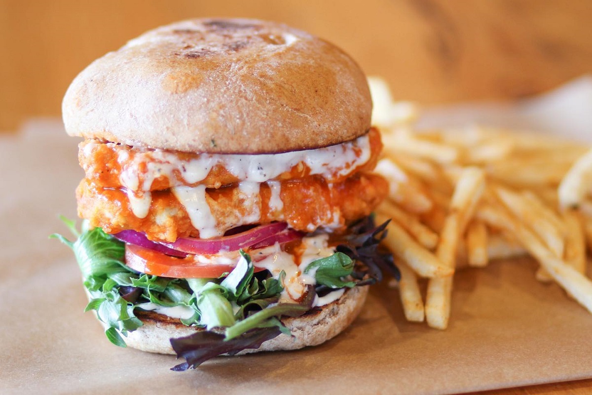 Native Foods makes menu items from scratch with environmentally sustainable, non-GMO ingredients sourced locally when possible.  The menu includes Bites and Shareables featuring Hustlin’ n’ Brusselin’ Sprouts, naked or sauced crispy plant-based chicken tenders by Incogmeato, and cauliflower dippers.