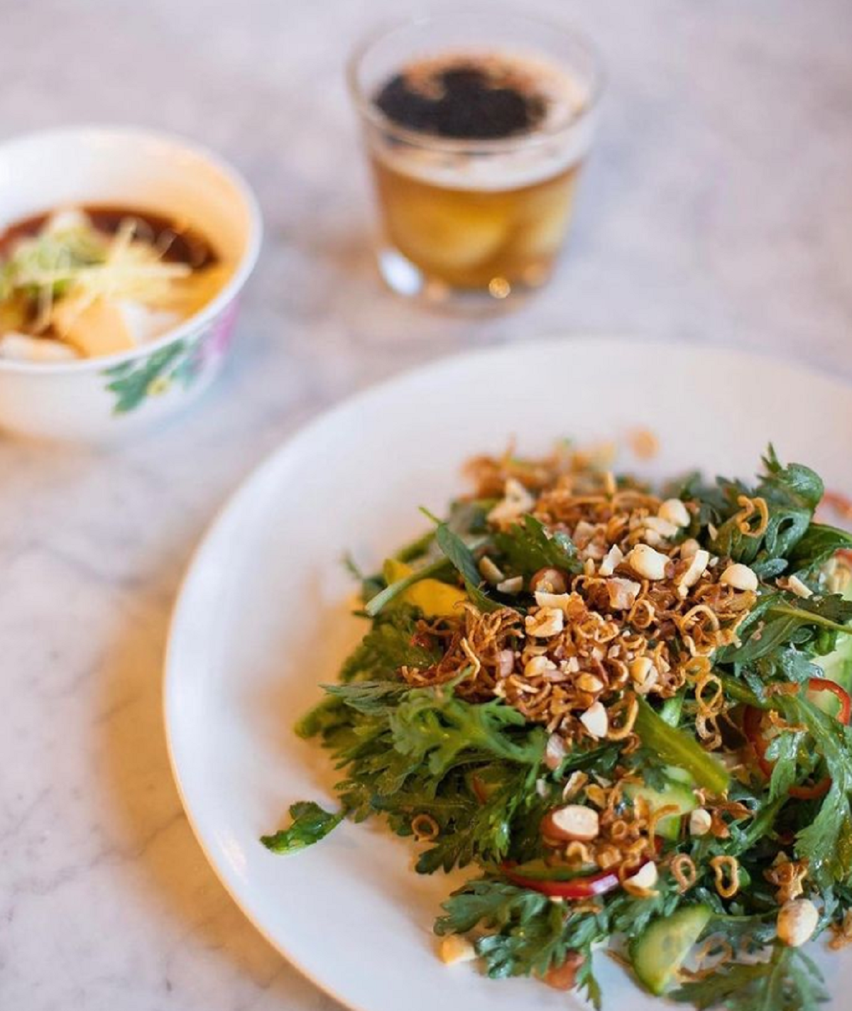 The Sap Sua Instagram account has a plethora of photos dedicated to sharing a glimpse of menu offerings. One menu option featuring fresh flavors could include chrysanthemum salad with avocado, cucumber, peanuts, and cane sugar vinaigrette. Another dish is Bắp Cải Luộc, which is boiled cabbage with a sauce created with hard-boiled eggs, fish sauce, and bird’s eye chili served with steamed rice.