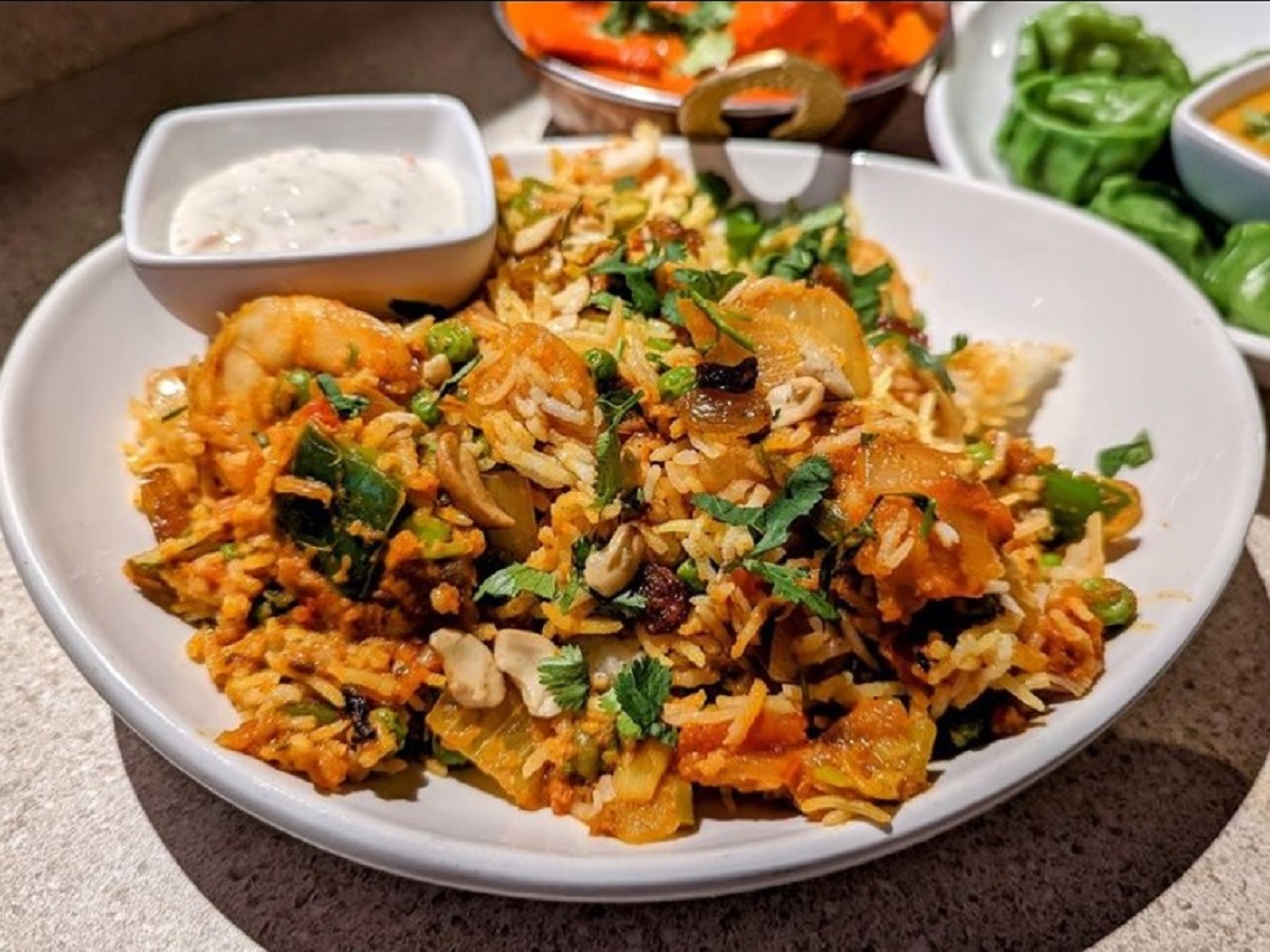 Diners can try a variety of entrees including signature dishes such as Chicken Tikka and Fish Curry. Vegetarian and vegan dishes are available.