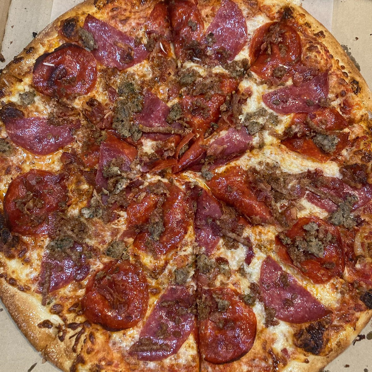 Or, you can build your own pie with choices of regular, gluten-free, or dairy-free cheese plus a range of toppings—chicken, meatball, breaded eggplant, and more. The menu includes salads, hero sandwiches, and calzones, along with a large selection of small bites and desserts.