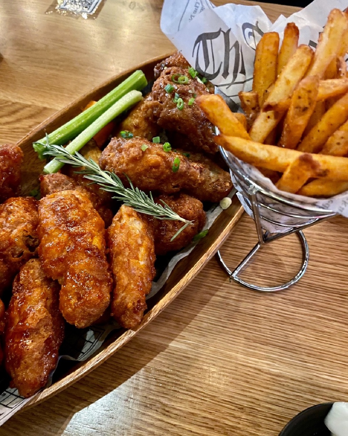 According to the Mono Mono website, an Asian frying technique is used to create the Korean-style fried chicken. The technique renders out the fat in the skin, which transforms it into a thin, crispy crust.