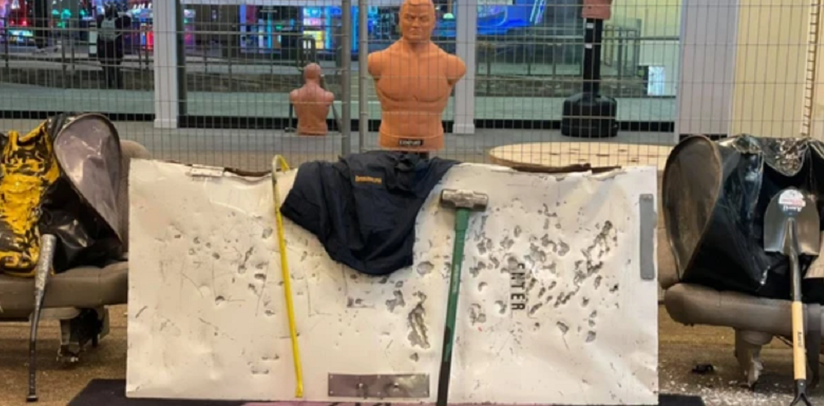 Guests can also punch, kick, and use a baseball bat to hit half-torso, body bags. “Maybe they had some trauma in the past. There’s a lot of different scenarios that people have come in with that they have shared that that’s why they are getting their aggression out,” Lambert explained. Others just participate in the Smash Room for the experience.