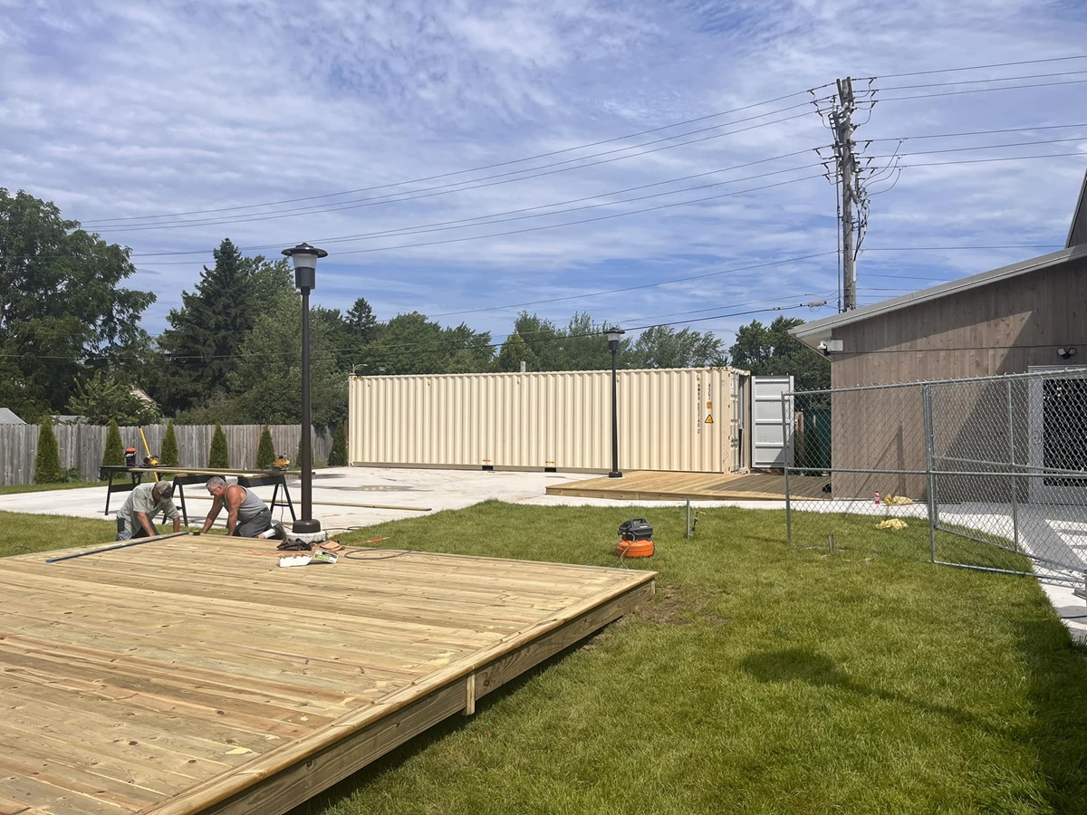 The Dragon and The Mermaid is situated in the tavern’s backyard. Construction for the outdoor dining space has been ongoing since August with contractor Kozak Construction LLC. The outdoor space, designed by Grand Haven-based Architektura, will include a deck, a gazebo, and a fireplace. The space will seat 150 people in the outdoor space, with a standalone bar and kitchen currently under construction in a 40-foot storage container Boyd purchased earlier this year.