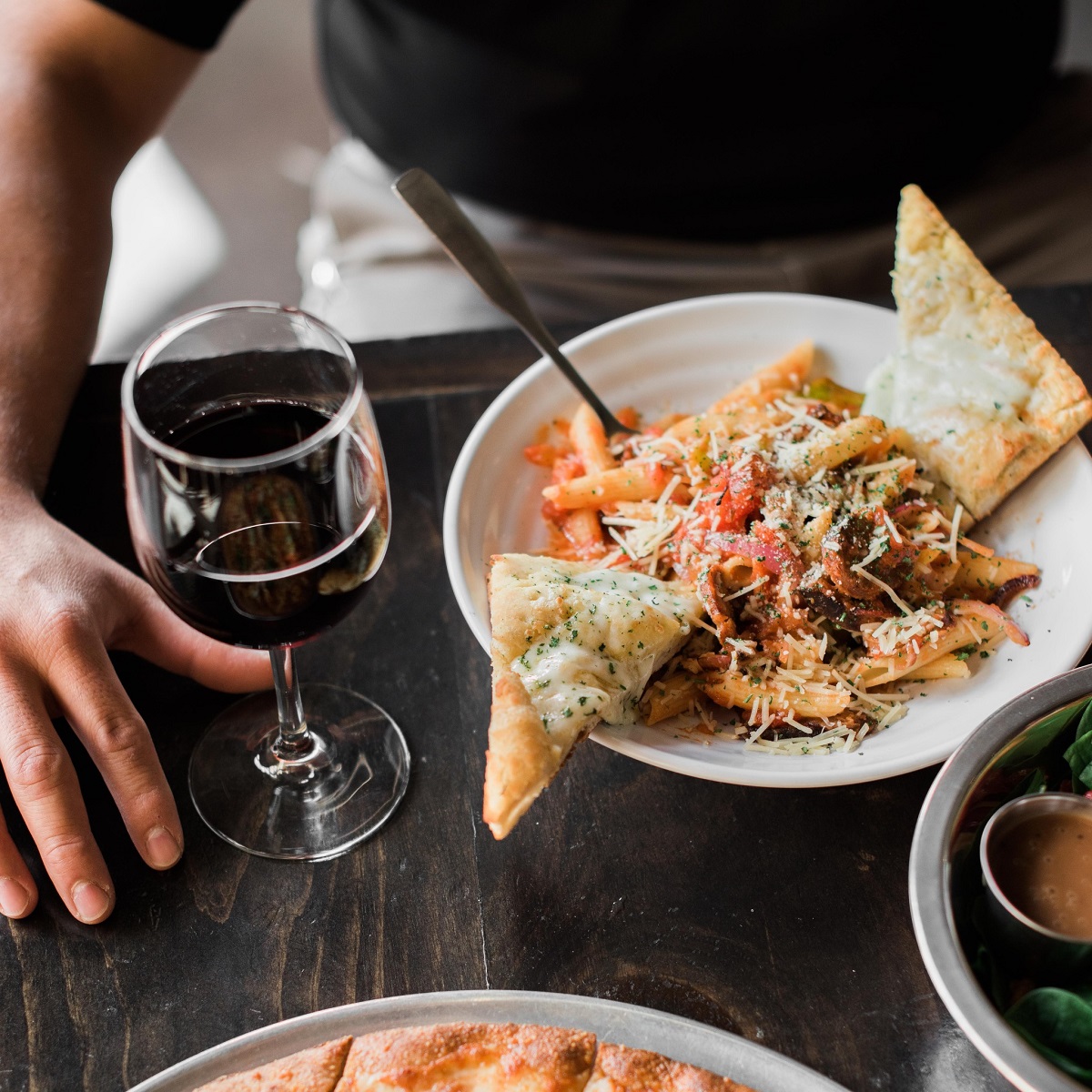 The Crust menu features a variety of pizzas, signature pastas, flatbread sandwiches, and calzones. Guests can also enjoy beer or wine with their meals.