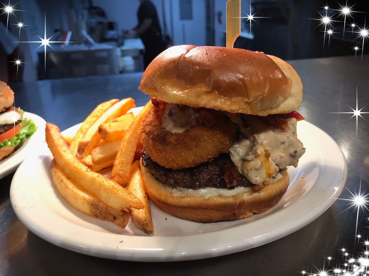 Jumpin’ Jax serves a whole slate of burgers, including the Which Came First Burger with fried egg, avocado, and garlic aioli, and the “Air Thang” Burger, with cheese, applewood smoked bacon, sauteed mushrooms, honey balsamic grilled onions, garlic aioli, and crinkle cut pickle chips. Other handhelds include battered cod sandwich the Flippy Floppy, Chicago-style hot dog the Shy Dog, and the Caribbean Chicken sandwich with jerk-seasoned grilled chicken, pepper jack cheese, and JAX BBQ sauce.