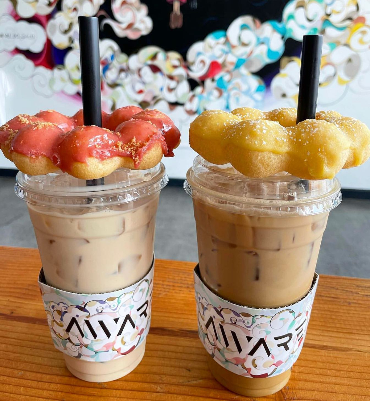 Aware serves a comprehensive menu of specialty coffee drinks, cold brew, plus premium tea and milk teas. Other menu highlights include the colorfully glazed mochi donuts, with rotating flavors like Matcha, Cookies and Cream, and Red Velvet, plus sandwiches and avocado toasts.