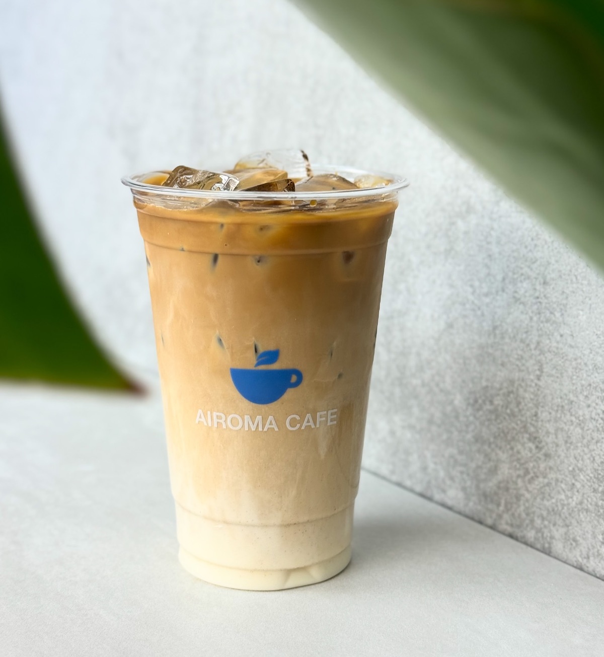 Located in Garden Grove, California, Airoma Cafecurates flavorful blends that refine your daily life.” It offers a wide range of coffees and teas, plus add-ons like Crystal Boba, Grass Jelly, and Lychee Jelly.