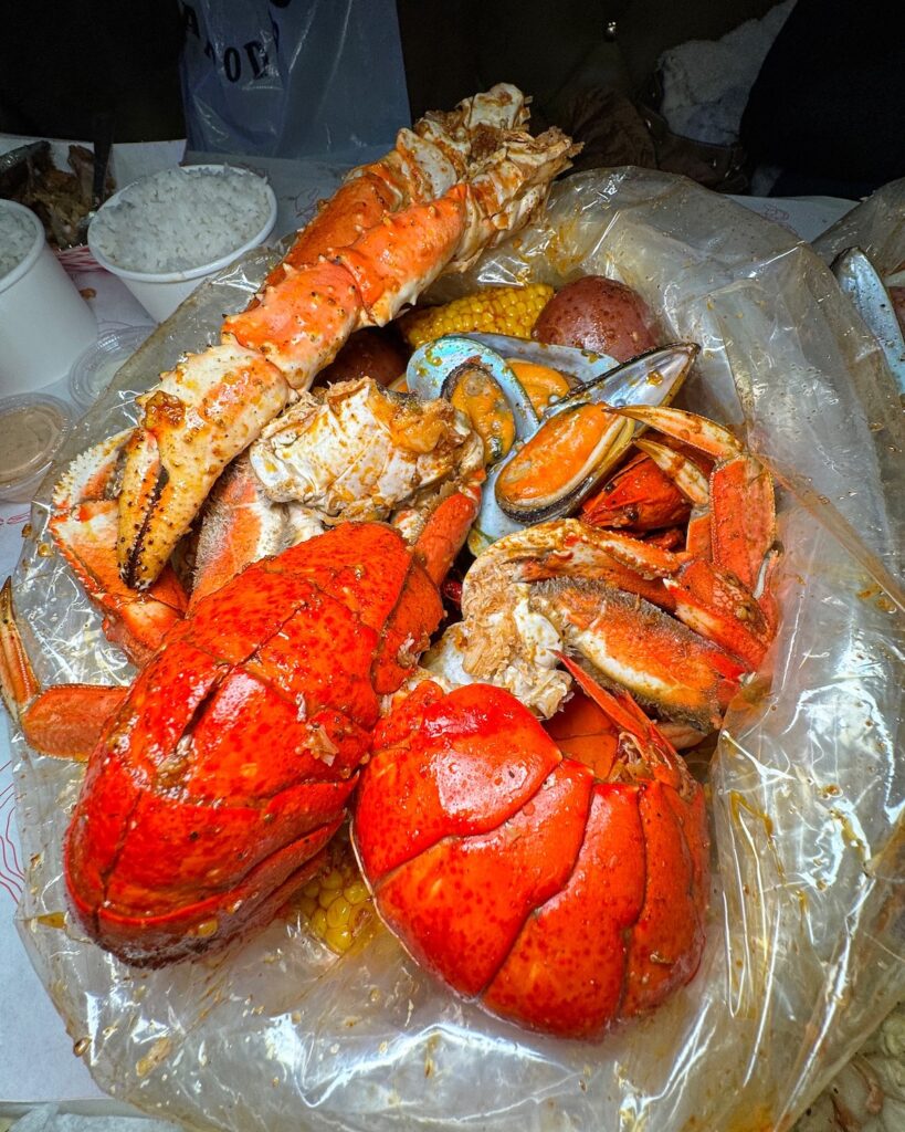 The seafood chain’s menus vary by location. The menu for the location on Broadway in New York City offers a choose-your-own style boil in which guests choose from seafoods like lobster, snow crab legs, crawfish, and clams, add sauces like Cap’t Loui (Louisiana) or Lemon Pepper, and finish off with a side like sausage, corn, or garlic noodles.