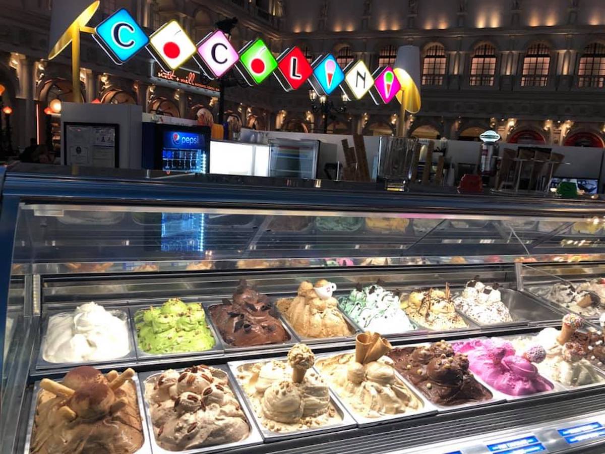 Cocolini was made popular by its other two locations, one at the Venetian and the other at Miracle Mile Shops. It serves high quality gelato in a variety of forms: gelato sandwiches, gelato shakes, frappes, and sundaes. Its 32 gelato flavors include Butter Pecan, Hazelnut, Cappuccino, Tiramisu, and Old Fashioned Lemon Ice.