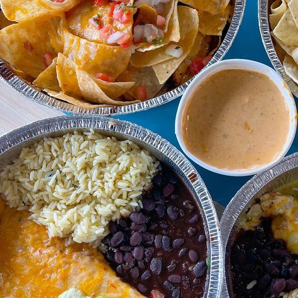 A selection of Kids Meals is also available for younger diners, including the Taco Meal, the Quesadilla Meal, and the Enchilada Meal, each served with choice of protein plus cilantro-lime rice and beans.