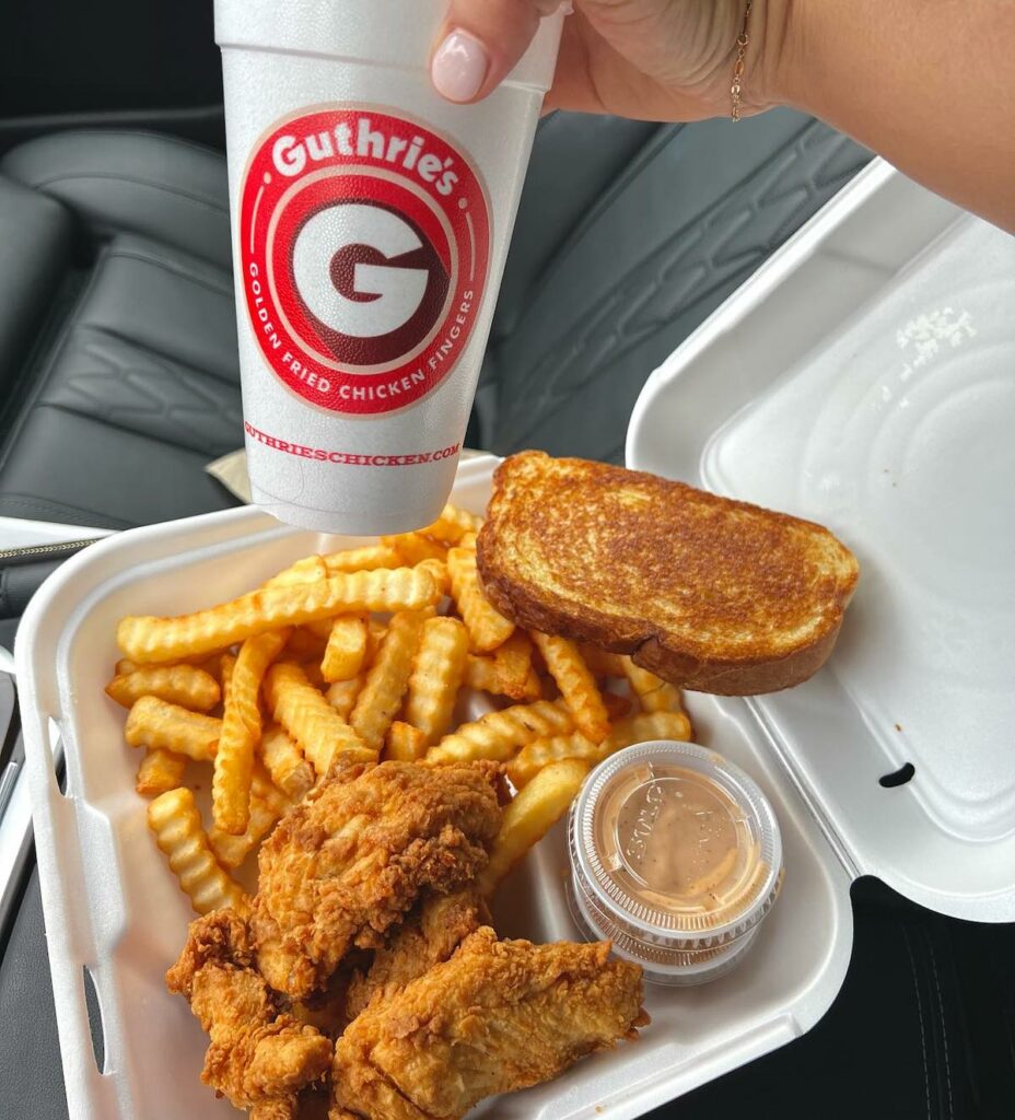 Guthrie’s has offered its classic take on hand-breaded chicken fingers—served southern-style with coleslaw, crinkle-cut fries, Texas toast, and signature dipping sauce—since it was founded in 1965.