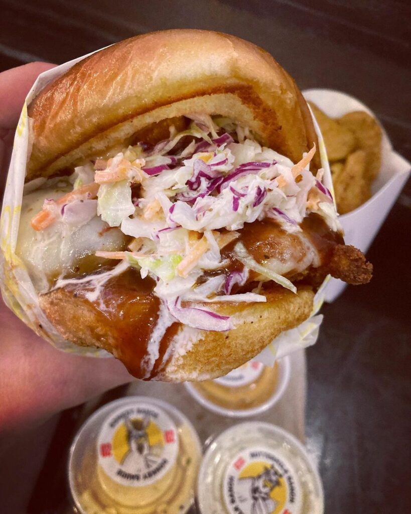 Chicken Guy! offers chicken tenders and tender sandwiches like the Bourbon Brown Sugar BBQ sandwich (Pepper Jack, bourbon brown sugar BBQ sauce, Special Sauce, slaw, pickles & BBQ kettle chips) and the Southwestern (Pepper jack, special sauce, avocado crema, lime mojo, charred corn, roasted peppers, black beans, lettuce, tomatoes & crispy tortilla strips).