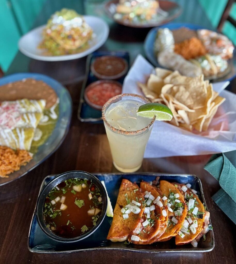 The Hussong’s menu at Mandalay Bay opens with appetizers like Taquitos, Mini Birria Tacos, and Elote Ensenada. Hussong’s Classics dishes include Carne Asada, Honey Chipotle Salmon, the Baja Burger, and Hussong’s Chile Relleno. There’s also a selection of breakfast choices, including a Breakfast Burrito and Huevos Rancheros.
