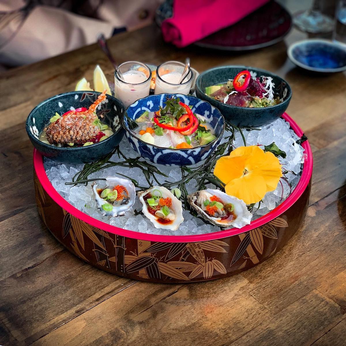The restaurant began in a small space that immediately took off, offering a menu packed with Cebiches like the Cebiche Nikkei (bluefin tuna, red miso leche de tigre, smokey yam puree, seaweed, avocado, onions, fresno chilies, choclo, cracked cancha, cilantro oil) and Tiraditos like Scallop Tiradito (Japanese scallop, passionfruit leche de tigre, potato shoe string, smoked yam puree, chia, pickled red onion, cilantro oil), plus a selection of sushi choices, cocktails, wines, sake, and more.