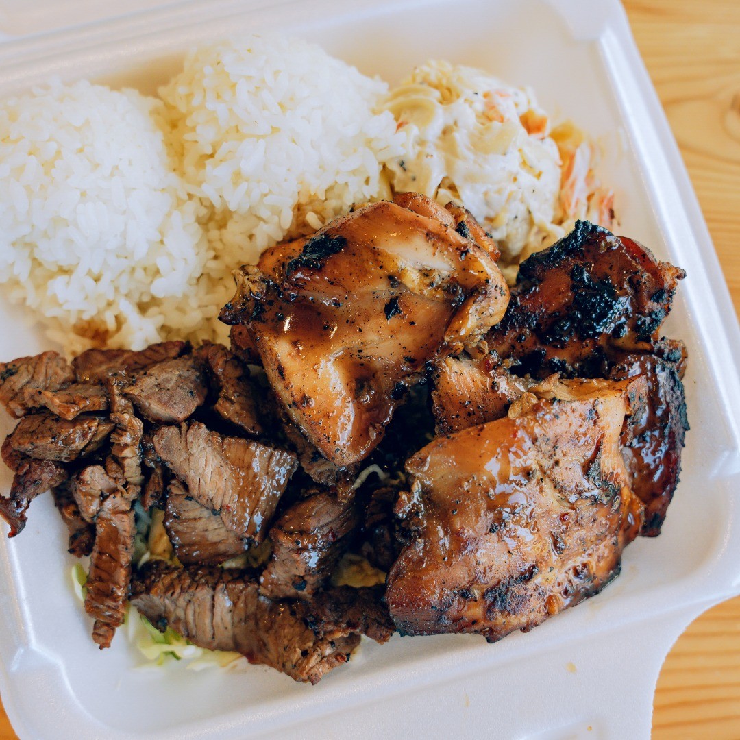 The Mo’ Bettahs menu features plates in several sizes, allowing guests to choose two or three of the brand’s Hawaiian style barbecue dishes, served with rice and macaroni salad. These protein choices include Teriyaki Chicken, Kalua Pig, Katsu Chicken, Teriyaki Steak, and Shrimp Tempura. Each plate comes with either Teriyaki Sauce or Katsu Sauce.