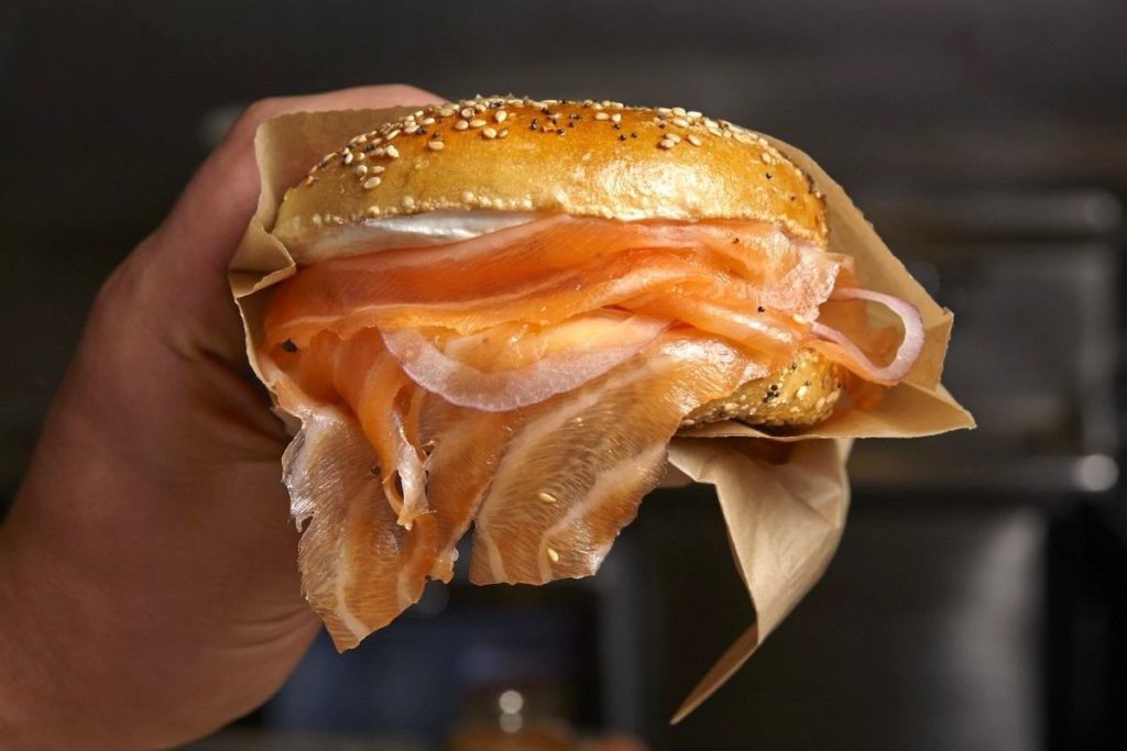 “New menu items include a house-smoked pastrami Reuben called the ‘Sam Rothstein,’ and a bagel with house-smoked hand-sliced lox with caviar called the ‘Moe Greene,’” the representative told What Now in an email conversation.