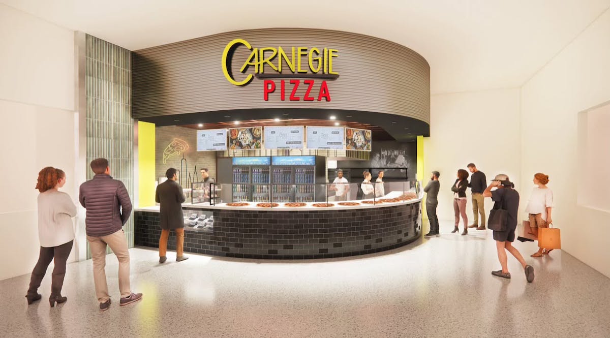 Opening in Miracle Eats, Carnegie Pizza plans to serve the very same menu currently available to fans at the Times Square location.