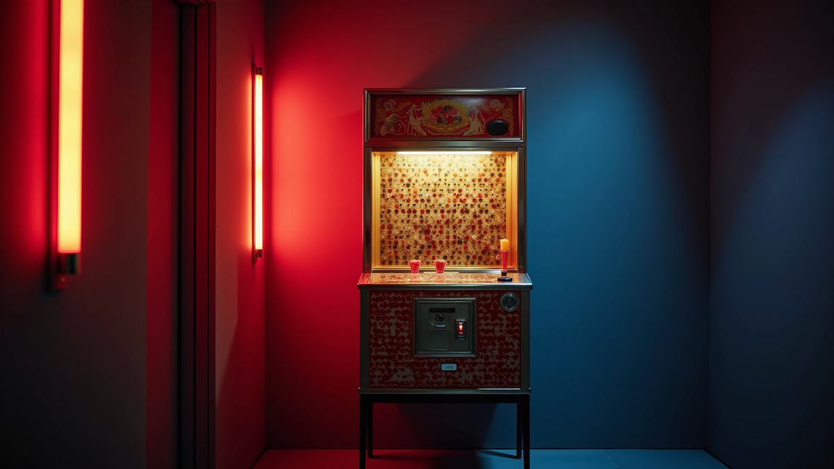 First, as the website mentioned, the bar is based on pachinko, the Japanese game often compared to a slot machine.
