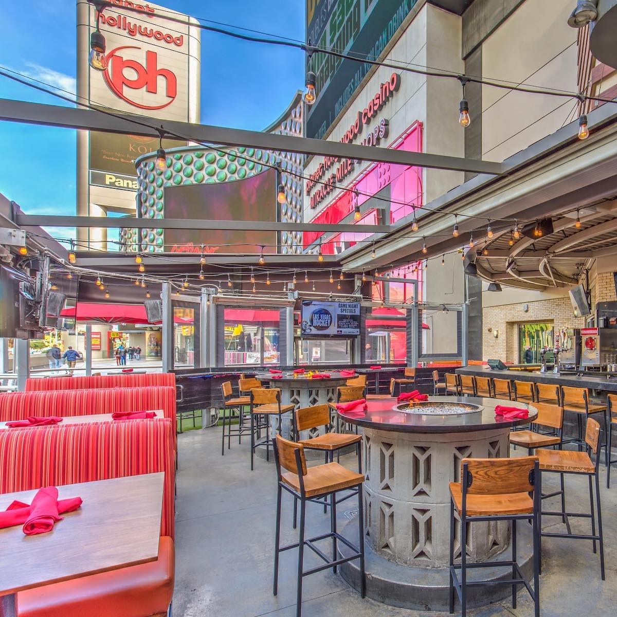 PBR Rock Bar has served breakfast, lunch, and dinner plus cocktails, offering breakfast dishes like Breakfast Pizza (scrambled eggs, mozzarella and cheddar cheese, salsa roja, bacon bits, sausage, tater tots and pico de gallo); sandwiches like the Triple Turkey Club and the Smoke Brisket BBQ Sandwich; and entrees like the Salmon Dinner with roasted veggies in a lemon herb sauce and Fish & Chips.