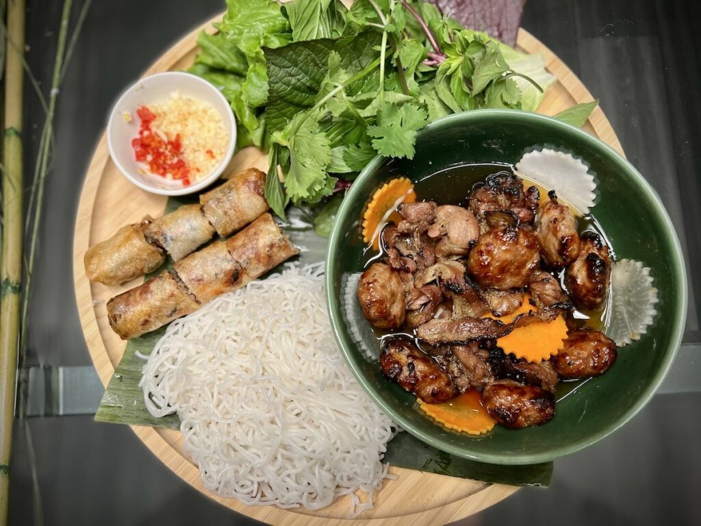 Highlighted dishes from the upcoming menu include Bánh Khot (Crispy rice cakes filled with shrimp, mung beans and scallions, flavored with a dash of turmeric served with Asian greens and lime chili fish sauce), Banh Xeo (Pan-seared rice flour filled with shrimp, pork belly, onions, mushroom & bean sprout. Served with Asian greens & lime chili fish sauce), and Bún Cha Hanoi (Hà Nội-style pork patties, Charbroiled pork and pork belly in spicy lime chili fish sauce; served with house pickles, Asian greens and vermicelli).