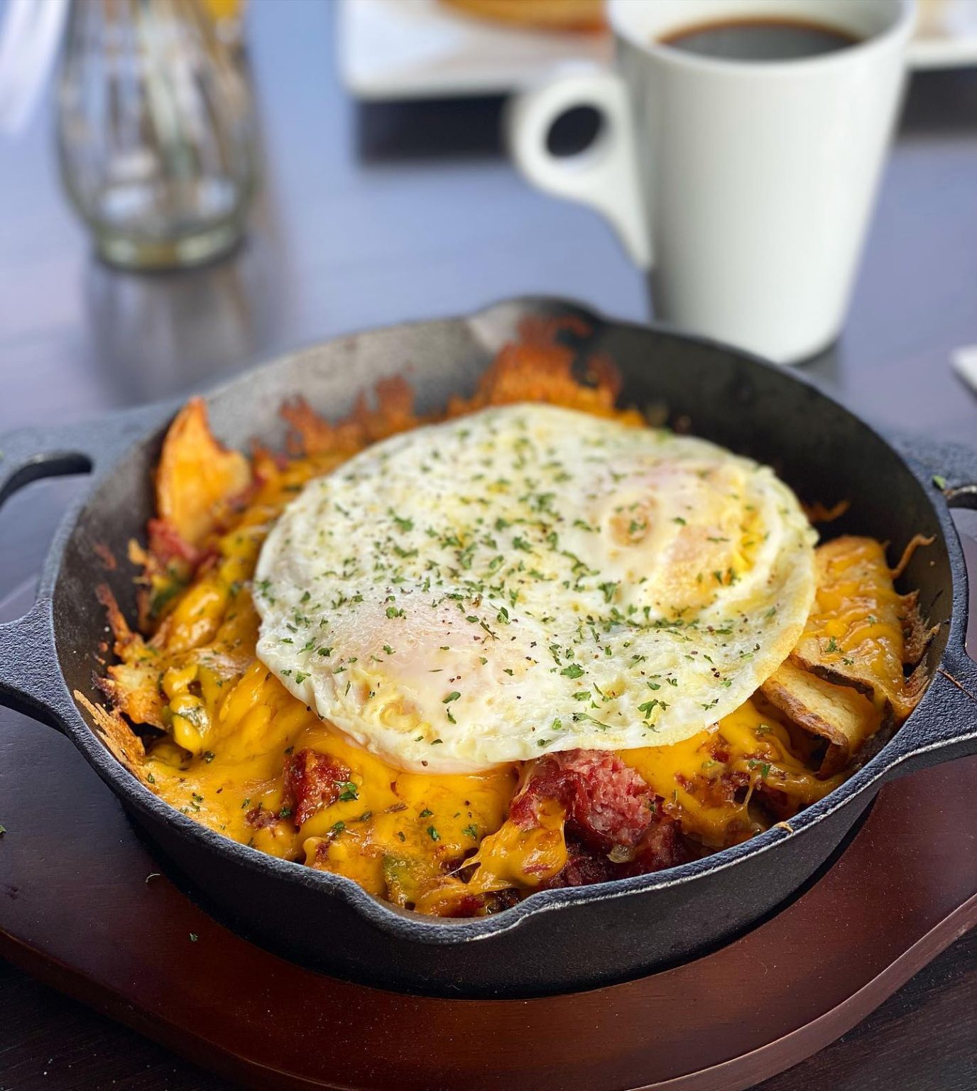The menu currently features diner-style breakfast dishes like Homemade Corned Beef Hash & Eggs and several takes on Eggs Benedict (including Eggs Benedict Lobster). Befitting its name, Omelette Cafe offers 38 different omelettes, including the “Ham I Am,” the “Maxwell St. Polish” with Polish sausage and cheddar cheese, “The Rodeo” with homemade chili, cheddar cheese and onions, and the “Sicilian Sessa” with meatballs, Italian sausage, mozzarella cheese, and marinara sausage.