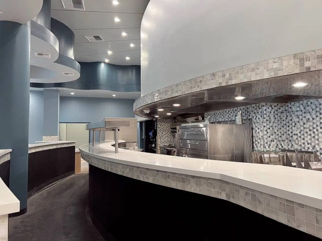 The new name reflects changes in the space, with the open kitchen and the terrace’s fire pits providing the eponymous “fiamma” (flame). The Review-Journal coverage quotes a representative of the property who describes the mood as coastal, with wavelike blues and soft curves.