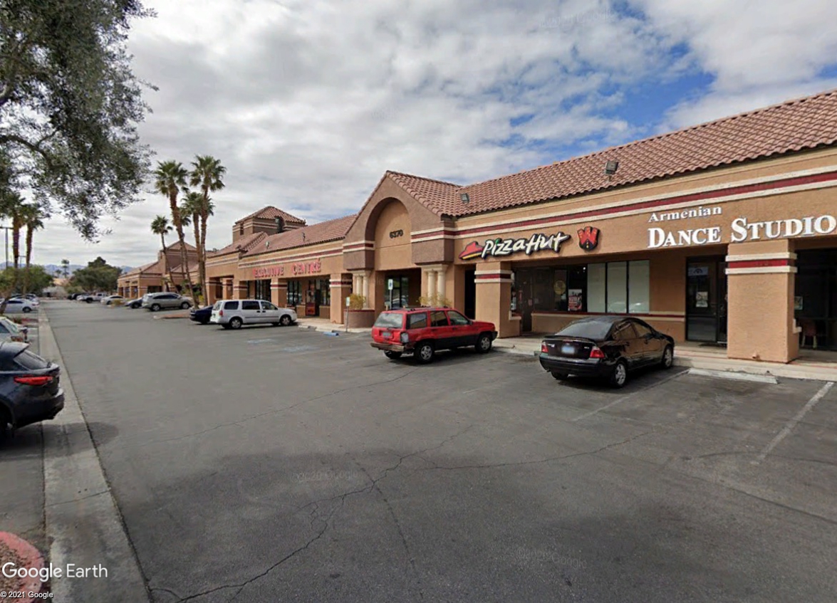 The location is part of Phoenix Plaza, a retail center on Flamingo Rd between El Camino Rd and S Torrey Pines Dr. The building at 6370 Flamingo is home to local businesses like Las Vegas Taekwondo Studio, as well as restaurants like Noosh Bakery, Jo’s Malasadas Café and Bakery, and Pizza Hut.